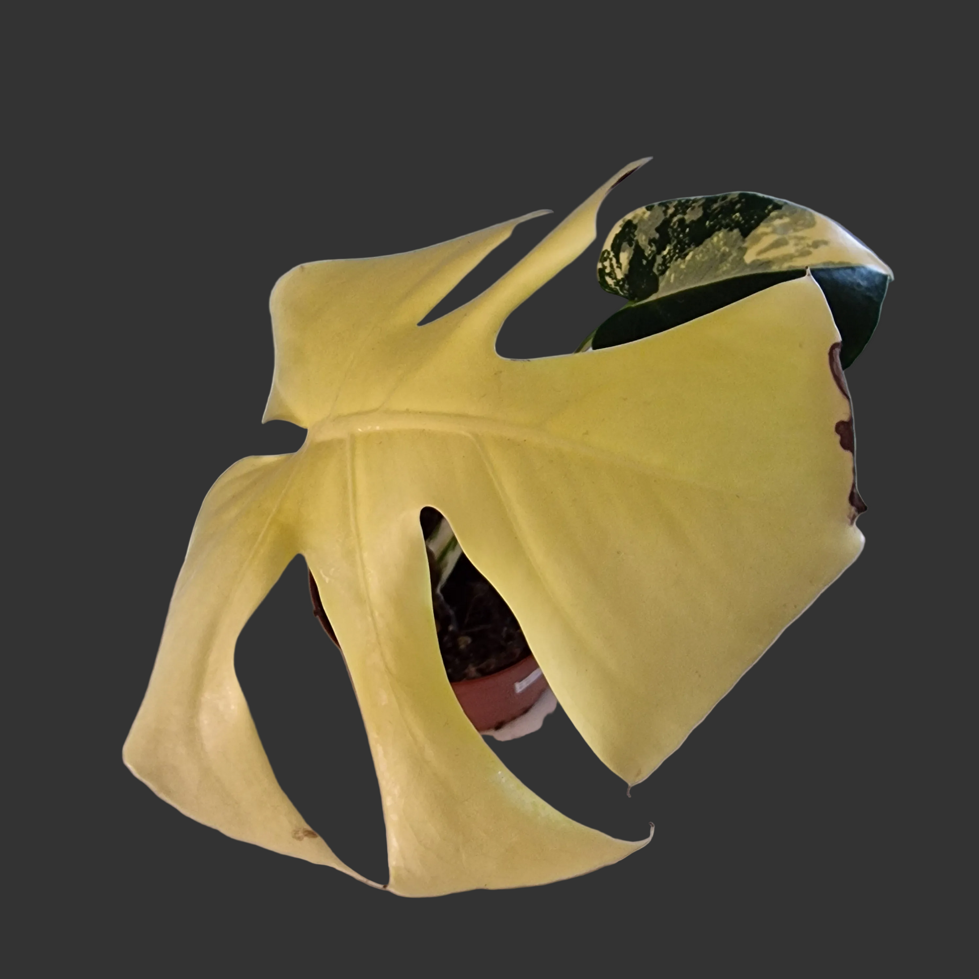 As it matures, this plant will become a true statement piece, producing even larger leaves with more dramatic colour separation. With good light and consistent care, aurea variegation tends to intensify, giving the plant a vibrant, luminous appearance that stands out in any collection.
