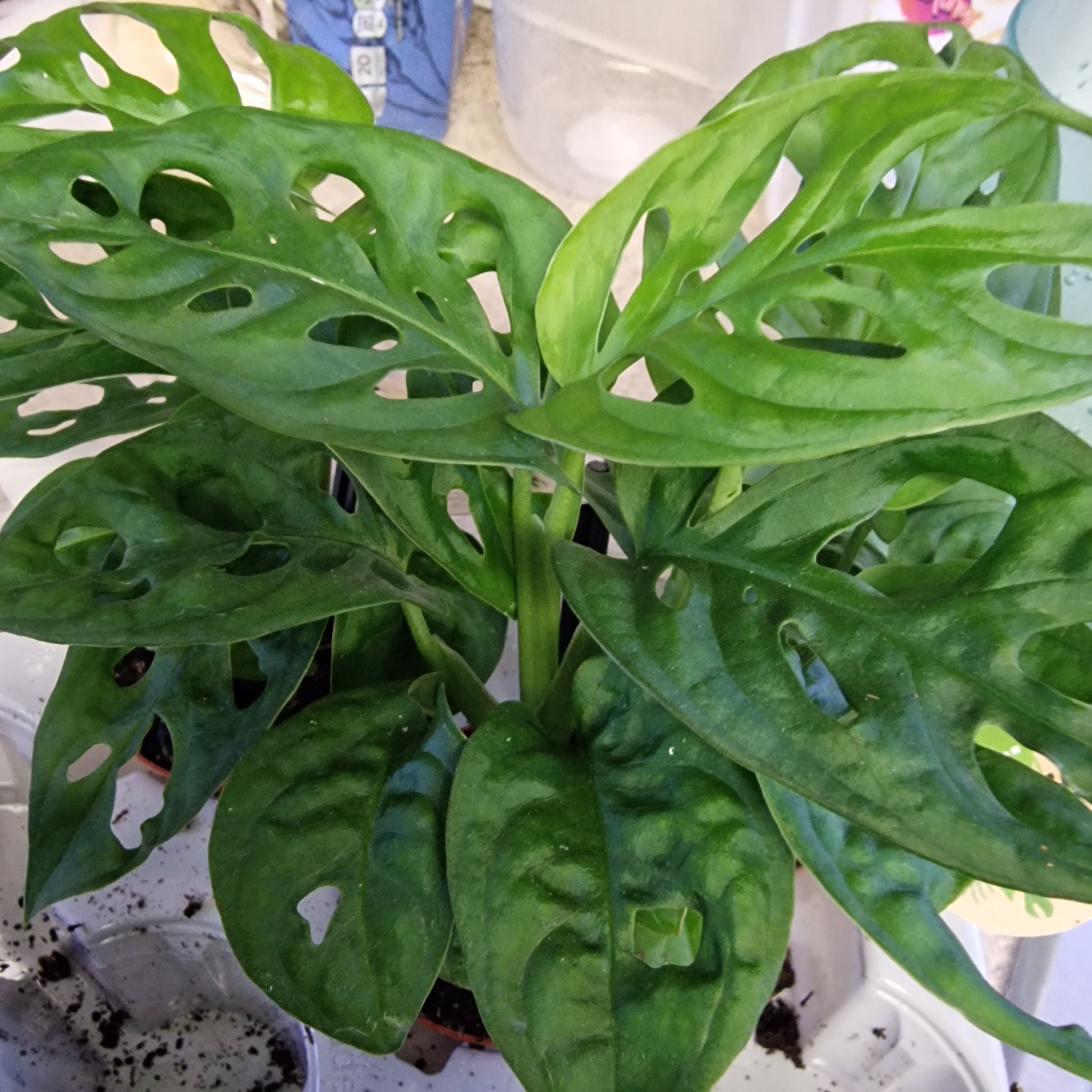 A popular Monstera adansonii, also known as Monkey Mask, grown in a 6cm pot. Loved for its distinctive holey leaves, this variety is fast growing and easy to care for, making it a favourite for both beginners and collectors.