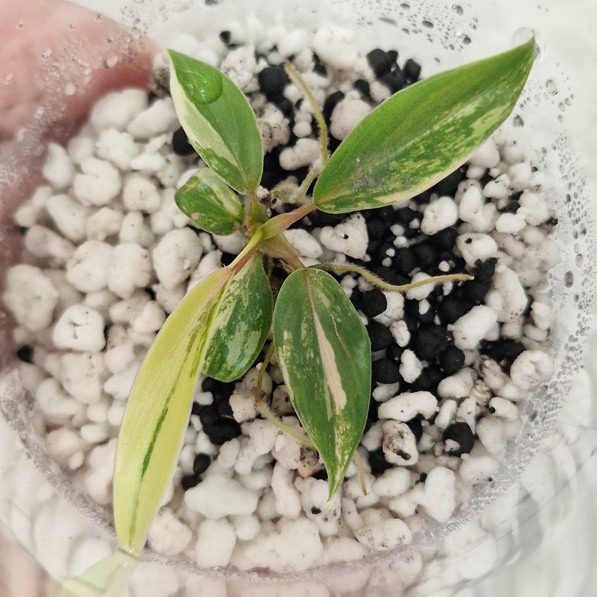 This plant is currently growing in a perlite and stratum mix in a warm indoor environment (approximately 18–23°C) and is continuing its acclimatisation process.